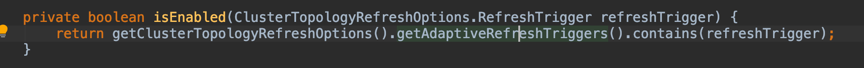 判断集群是否开启刷新拓扑结构,依据ClusterTopologyRefreshOptions中自适应刷新的trigger中是否包含指定的重定向trigger,在默认配置下,这个trigger是什么样的呢?